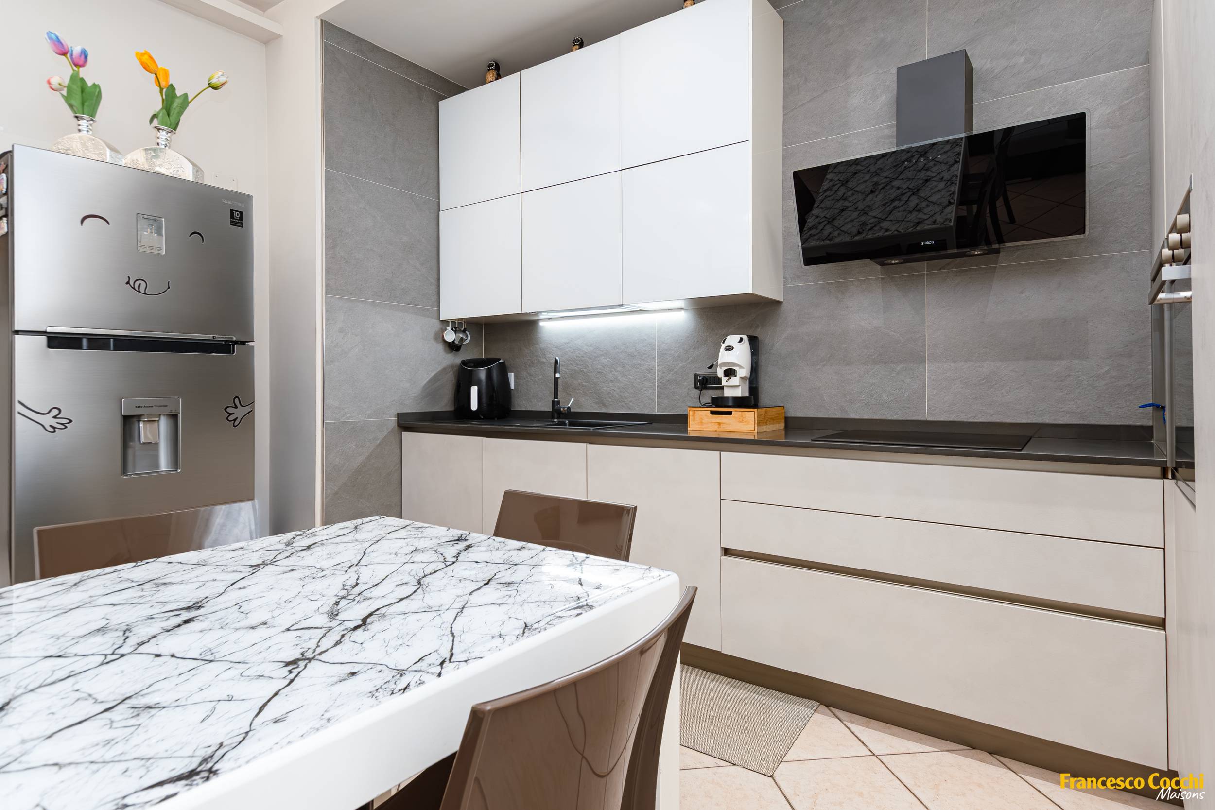 La Francesco Cocchi Maisons ti propone un appartamento di circa 85 metri quadrati, situato al primo piano di una palazzina servita comodamente da ascensore, nella zona di Coiano, tra le più richieste e meglio servite di Prato. Qui la comodità dei servizi si fonde con la tranquillità di un contesto residenziale, a due passi dalla pista ciclabile che costeggia il Bisenzio. Completamente ristrutturata nel 2000, l’abitazione unisce il comfort e la spaziosità delle costruzioni anni ’70 a uno stile contemporaneo e accogliente.